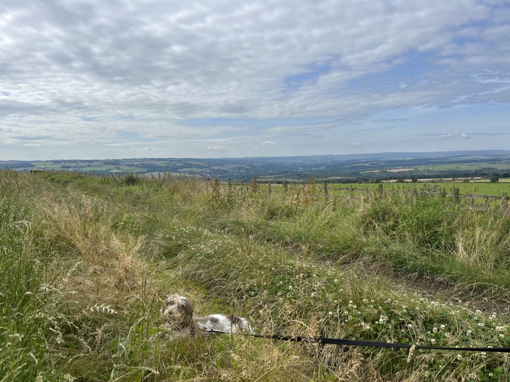 Just off the road that leads from Leadgate to Headley on the Hill, lies the very unassuming Currock Hill. Easy to find and due to it’s particular odour, not an easy one to forget! The views over the surrounding countryside are lovely through and if you’re up there I can thoroughly recommend Chopwell Woods close by where Bramble had a paddle in the Derwent!