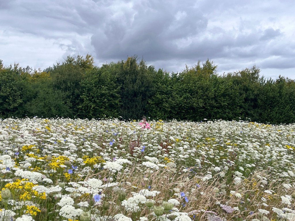 There is a trig point in the field but it was too hard to spot in the flowers!