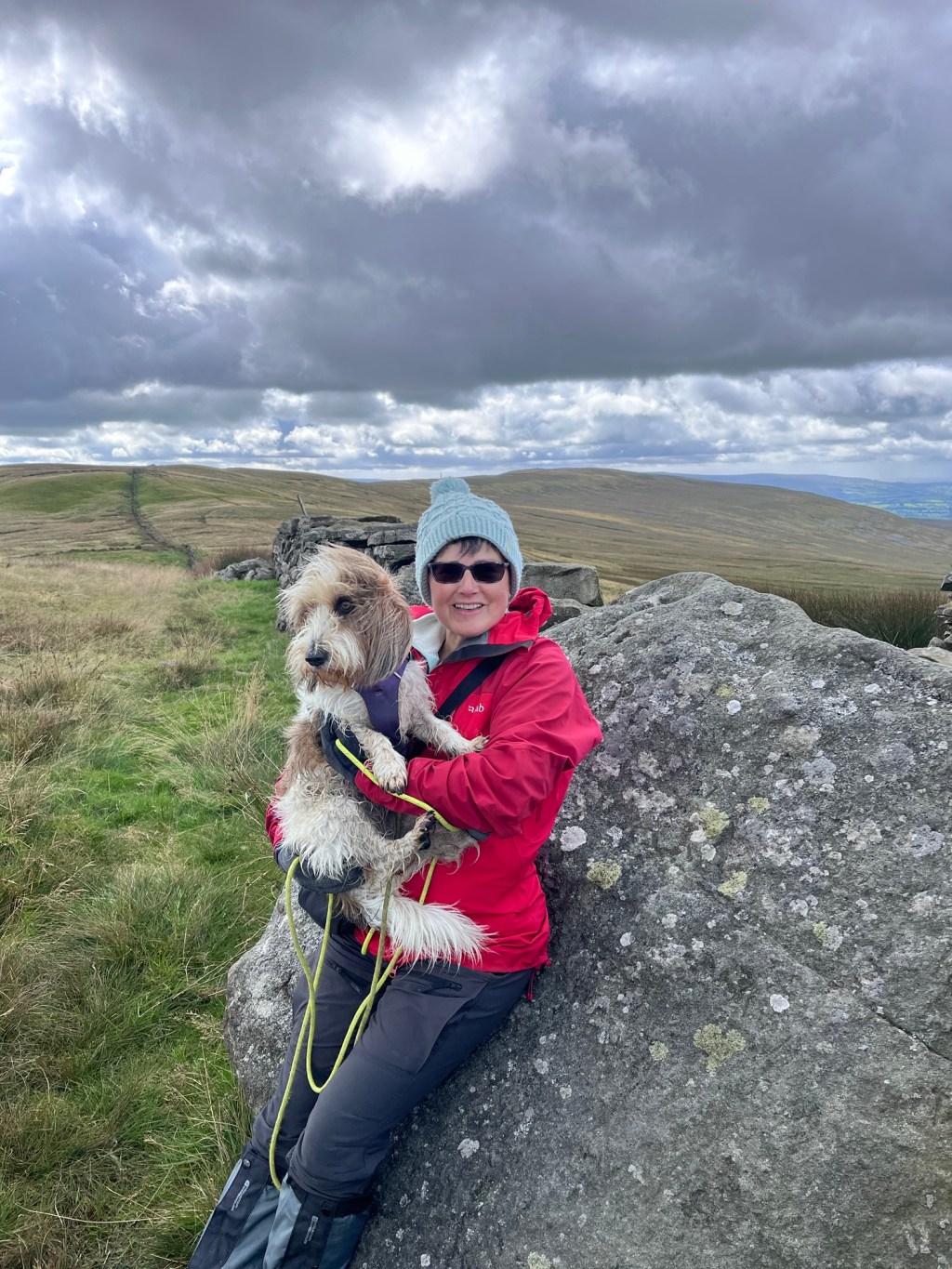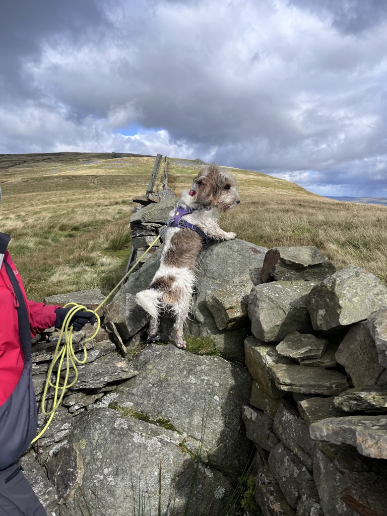 Bramble climbed this one equipped with her very own Vibram soled walking boots to protect her scratched paw.