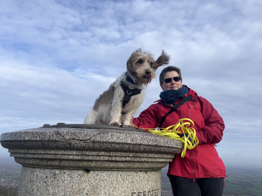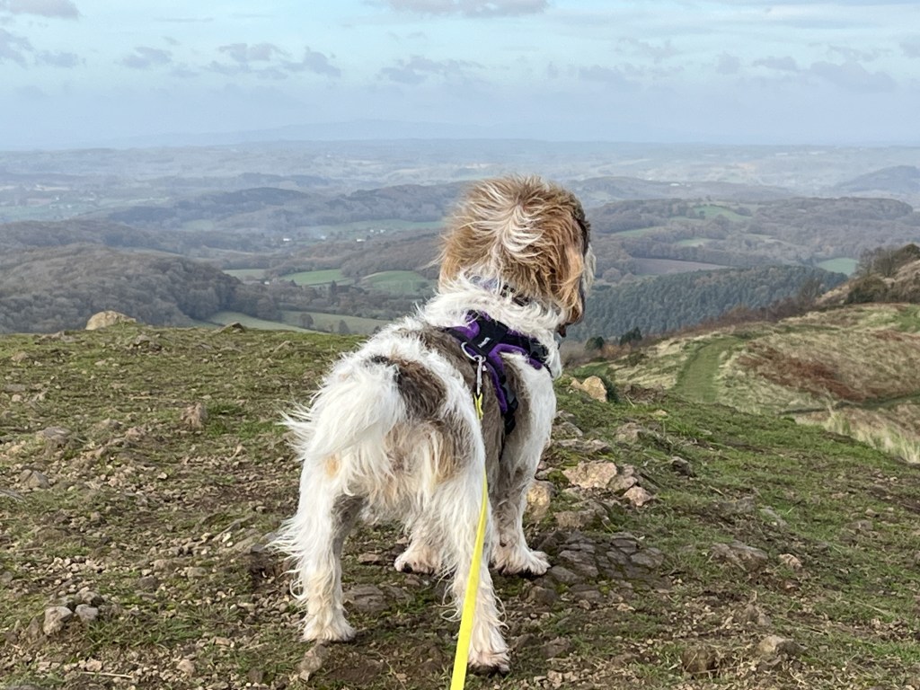 A couple of fine days forecast and so off we went to Malvern and the beautiful Worcestershire Beacon, high point of Worcestershire (no surprise there) at 425m. It was a tad blowy on the top as Bramble’s ears demonstrate!