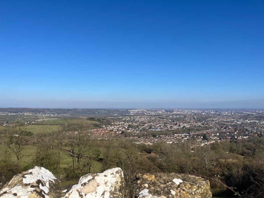 Overlooking Bristol, Dundry Hill is mostly in Somerset, but wandering slightly north downslope and you enter the ceremonial county of Bristol and it’s high point at 160m. There are stunning views over the Clifton suspension bridge and the Severn Bridge to Wales beyond.