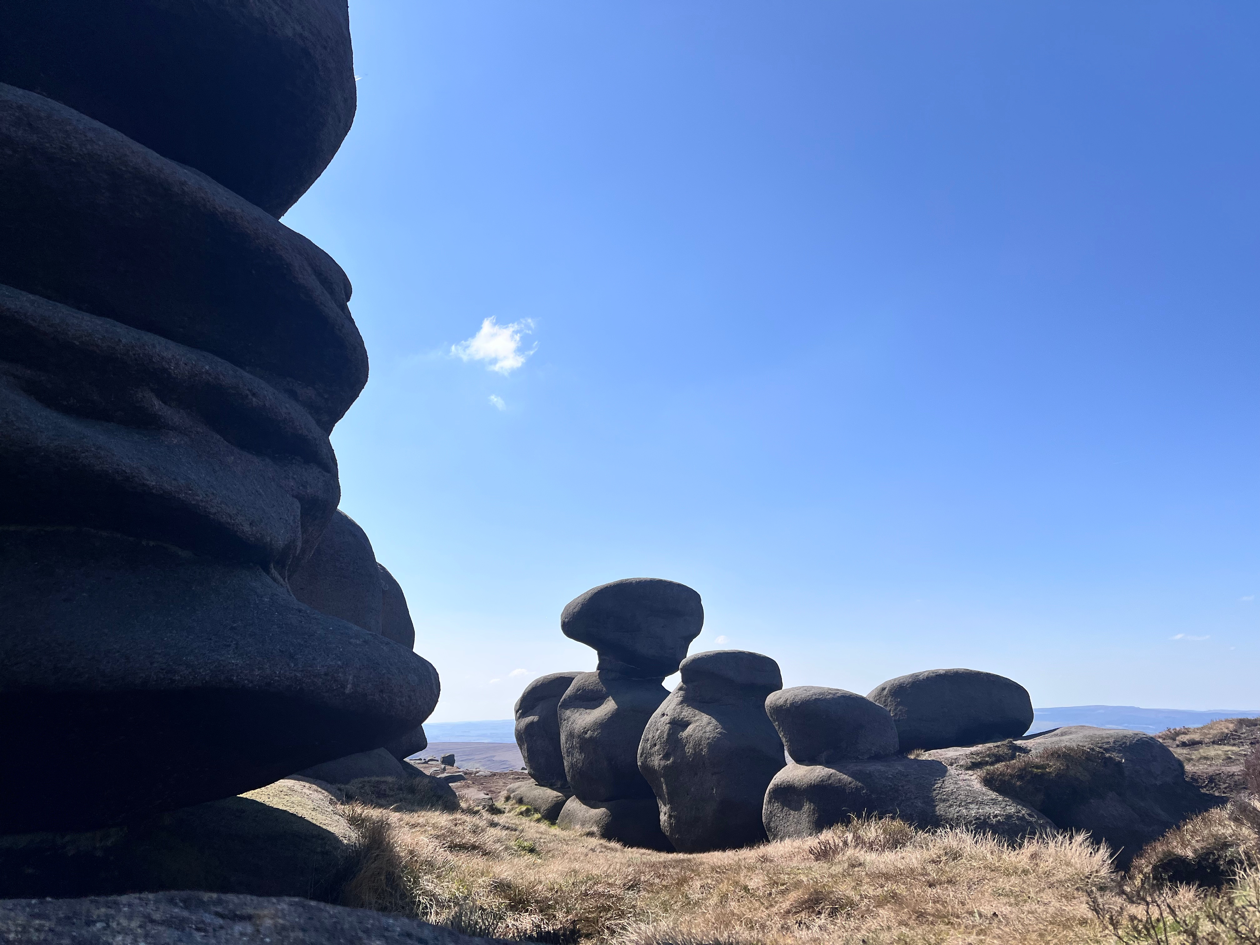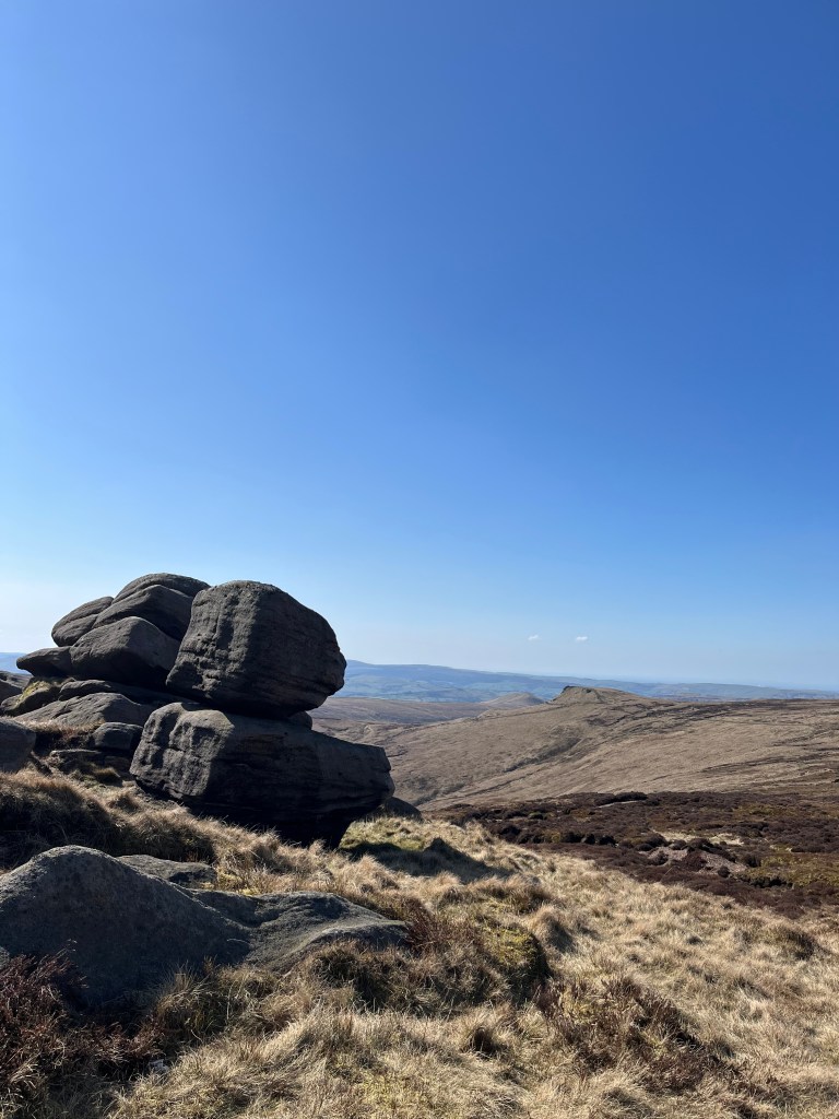 Back to a mountain, Kinder Scout peaks at 636m above the rest of Derbyshire. We were joined by old friends, Paul and Jane for this bright but blustery day. The high point isn’t immediately obvious and required taking a bearing across the bog.