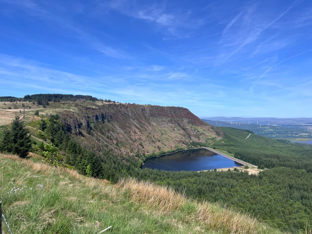 High point of Glamorgan, Craig Y Lyn rises to 600m above the Welsh valleys. This was our recovery day after Pen Y Fan so a gentle bimble through woods to a freshly painted trig point.