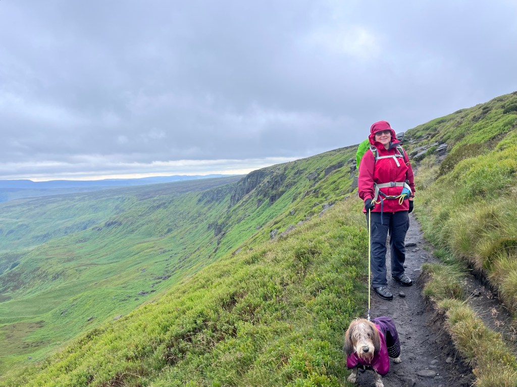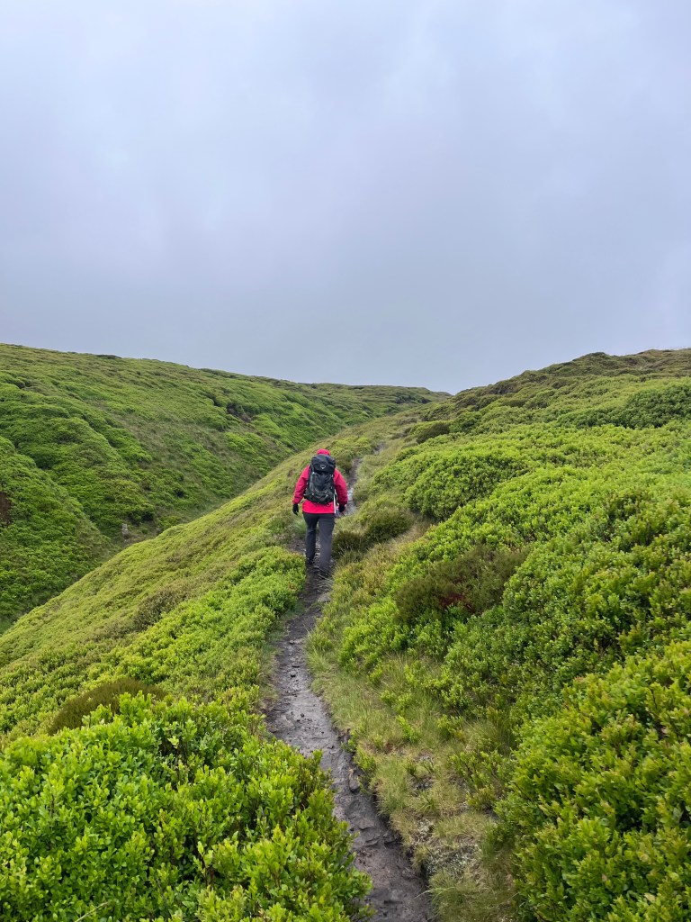 We were accompanied by 40mph winds and driving rain for this hike. On a good day with decent visibility, this walk would be a beautiful stroll over the moors!